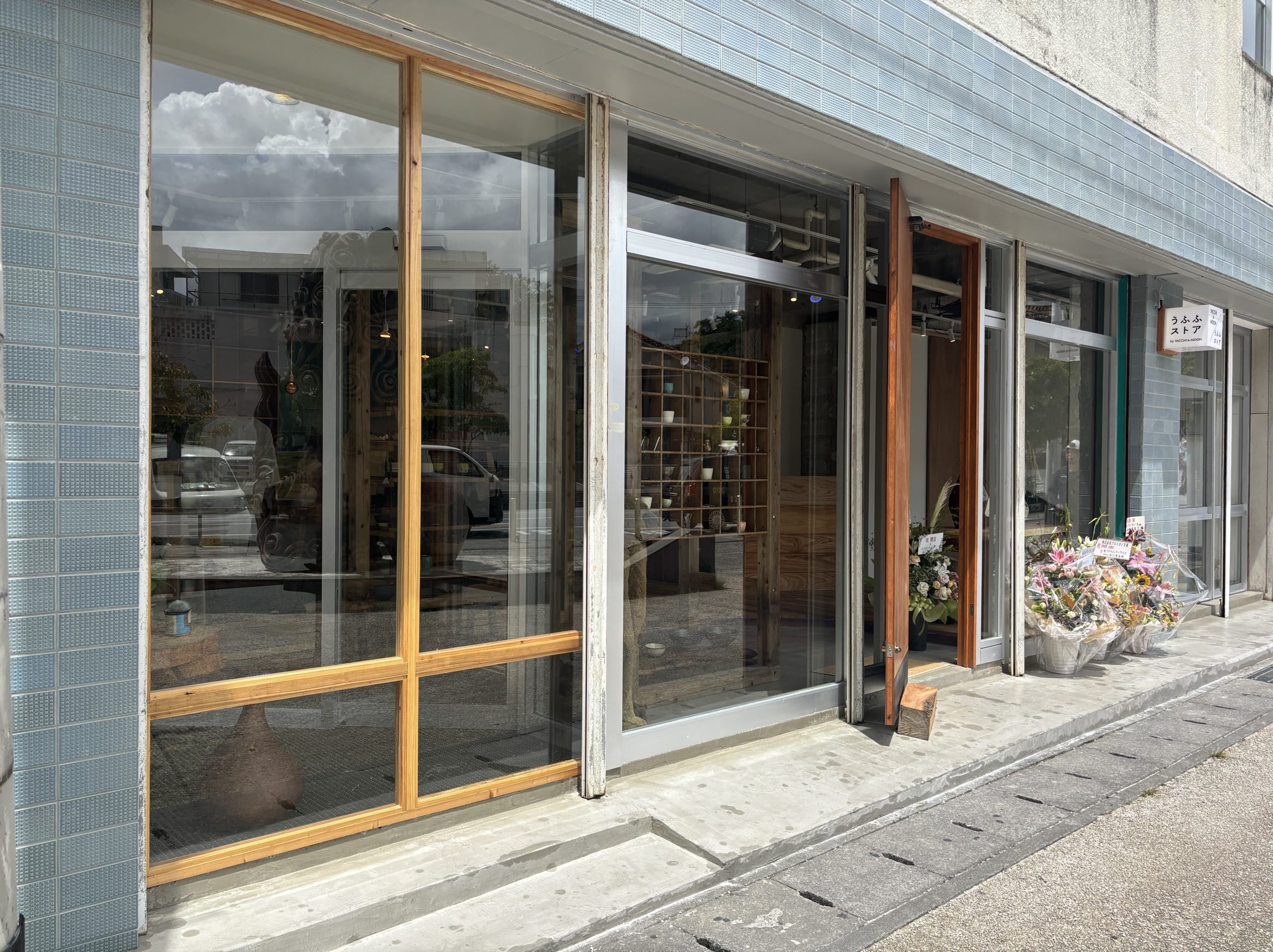 那覇市の店舗リフォーム完了しました。外の木枠のfix窓もいい感じで、造作扉も大きくて迫力があります。タイルもばっちりです。外装と内装の工事を任せてもらいました。無事に引き渡せて、お店もオープンできてよかったです。