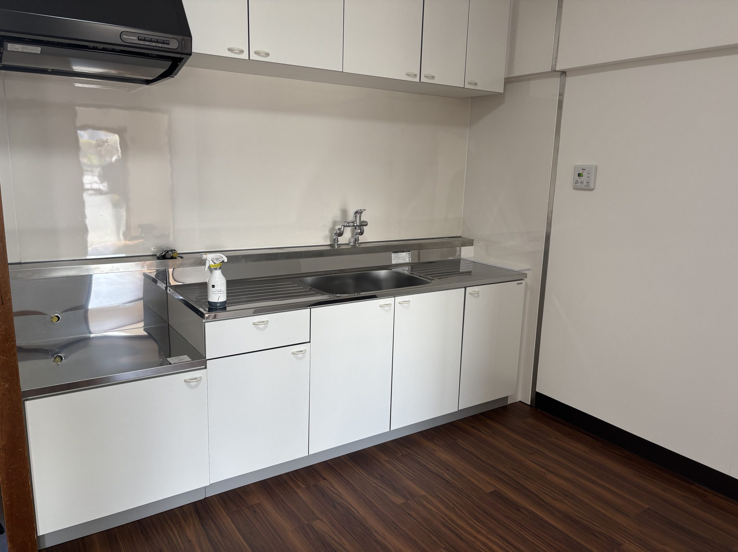 古くなった給水管のやり替え無事に終え、キッチンの取付、床の張り替え。復旧工事完了です。